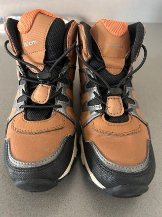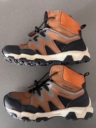 Botas de montaña Geox Amphibiox en color marrón y naranja. Talla 32 SIN ESTRENAR NUEVAS!!!!! - Cierre con cordones elásticos y tanca. - Suela de goma con buen agarre. - Caña alta para mayor protección. - Diseño robusto y deportivo.