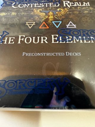 Caja de mazos preconstruidos de Sorcery: Contested Realm, edición Alpha (Kickstarter). Contiene avatares exclusivos. Muy difícil de conseguir. Envio por correos o agencia asegurado a cargo del comprador. No se hacen envíos fuera de la península. Precio NO negociable. - Mazos preconstruidos. - Edición Alpha.