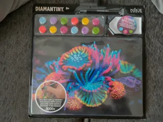 Kit de pintura de diamantes de la marca Diamantiny, modelo Mar. El set está sin estrenar e incluye más de 3000 gemas. - Incluye herramienta para colocar las gemas. - Contiene 8 colores de gemas. - Diseño de coral vibrante.