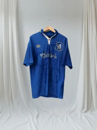 Camiseta del Chelsea FC – Umbro – años 90 💎 Edición limitada, pieza vintage muy buscada por coleccionistas y fans del fútbol clásico. 🧵 Logos bordados Umbro y Chelsea, calidad espectacular de los 90 👕 Marca talla XL, pero equivale a una L, queda perfecta. 📐 Medidas de axila a axila y largo en las últimas fotos para total claridad. 🔥 Estilo retro auténtico, ideal para streetwear, fútbol casual o colección. ✅ En muy buen estado general,tiene desgaste debido al paso de los años, conservada con cariño. 📦 Envío rápido