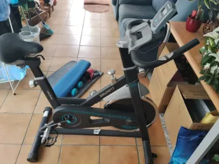 Bicicleta de spinning de la marca Drumfit, modelo Cecotec. - Diseño moderno en color negro y detalles en azul. - Sillín acolchado y ajustable. - Manillar ergonómico. - Pantalla digital para seguimiento de ejercicio. Volante de inercia de 13 kg: consigue un entrenamiento completamente fluido. Pantalla LCD con panel de control: muestra velocidad, tiempo, distancia, calorías consumidas y frecuencia cardíaca. La función Scan controla tu entrenamiento cada momento.