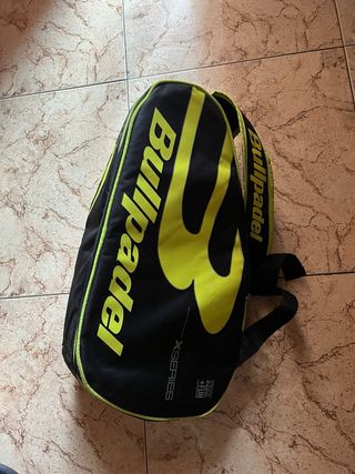 Paletero de la marca Bullpadel en color negro con detalles en amarillo. - Diseño con logo grande de Bullpadel. - Correa ajustable para llevar. - Serie X SERIES.