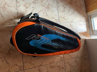 Paletero Bullpadel Avantline con un diseño moderno y funcional. - Color principal negro con detalles en naranja y azul. - Compartimentos amplios para equipamiento deportivo.