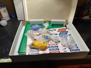 Conjunto de protecciones para karate infantil. - Guantinas rojos y azules NKL. (XS) - Protecciones antebrazos Arawaza.(XS) - Peto protector blanco NKL (L) - Casco protector blanco NKL (L) - Espinilleras y Empeineras azules y rojas Arawaza. (XS) Se vendo todo el pack