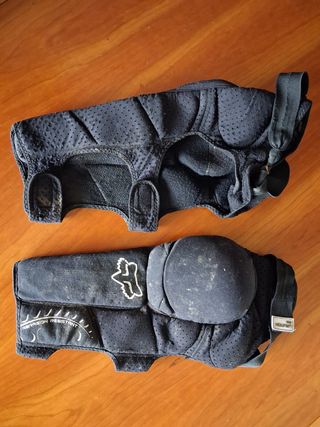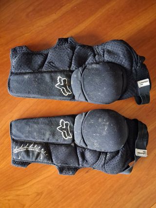 Protecciones de moto o bicicleta marca Fox. - Rodilleras y espinilleras. Perfectas para hacer bici de descenso. - Diseño acolchado. - Tejido transpirable con perforaciones. - Cierre con velcro. - Logo de Fox. - Resistente a la abrasión.