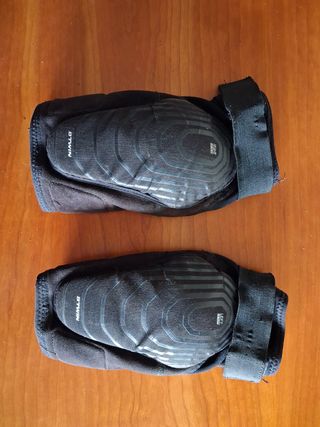 Protecciones para codos de la marca Btwin en color negro. - Diseño ergonómico. - Cierre ajustable con velcro. - Material flexible y resistente.