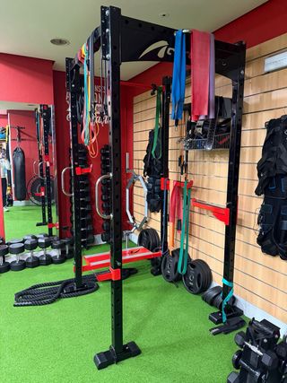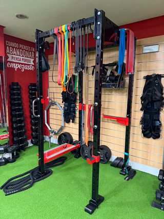 Jaula de entrenamiento funcional para uso profesional o gimnasio en casa. Estructura robusta y versátil. Se vende por cambio de disposicion gimnasio. Siempre en interior. - Barras de dominadas integradas. - Escalera de ejercicios. - Diseño de alta resistencia.