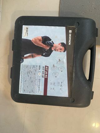 Se vende equipo de gimnasio completo, ideal para entrenar en casa. Se puede vender el lote completo o por partes. Rack Banco de pesas ajustable Barra larga de 28mm Poleas y cables para diversos ejercicios Discos de pesas 110kg ( 2*20+ 4*10+ 4*5kg) Mancuernas 2-24kg ajustable+ soporte Kettelbells ajustable 4-18kg Solo en discos... Merece la pena Preguntame si quieres cosas sueltas que si se hace un pack si que podemos negociar , pero no vendo un disco suelto por ejemplo , tiene que ser que te lleves 2 cosas o algo así . Rack gimnasio pesas musculación gym mancuernas fuerza jaula dominadas press bíceps salud ejercicio entrenar