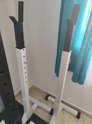 Dos unidades de soporte para barra de pesas de la marca HOMCOM, modelo A91-174. Ideal para entrenamientos en casa. - Capacidad máxima: 150kg. - Marca: HOMECOM.