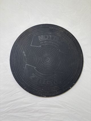 Plataforma giratoria de la marca Mottez, con un diseño circular y concéntrico. - Fabricada en material negro. - Presenta inscripciones y flechas indicativas.