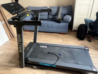 Vendo Salter T40 Treadmill en muy buen estado. Comprada en 2021 por 800€. Ha tenido poco uso y funciona perfectamente. Ideal para caminar, correr o entrenar en casa. Características: • Velocidad hasta 16 km/h • Pantalla digital con tiempo, distancia, calorías y velocidad • Varios programas de entrenamiento • Sistema de amortiguación para proteger las rodillas • Plegable para ahorrar espacio • Muy estable y cómoda Se puede ver y probar sin compromiso. La vendo porque no la estoy usando.