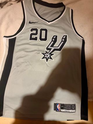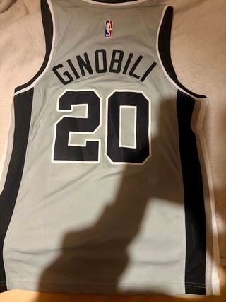 Camiseta de baloncesto de los San Antonio Spurs, número 20, de Manu Ginobili. Modelo Nike Swingman. - Color gris. - Diseño con el logo de los Spurs y el Swoosh de Nike.