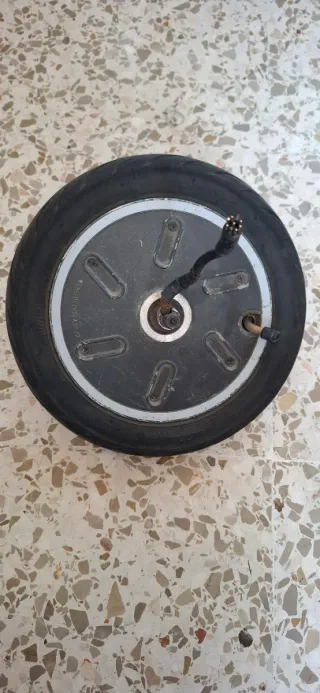 Rueda delantera para patinete SmarGyro K2. Se incluye el neumático y la llanta. - Llanta de color negro con borde plateado. Actualmente se encuentra pinchada, pues la llené y al día siguiente estaba vacía ideal para arreglar y tenerla de repuesto