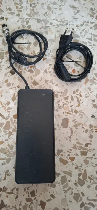 Cargador para patinete SmarGyro K2. Incluye el cargador y su cable de conexión. - Color negro. - Diseño compacto.