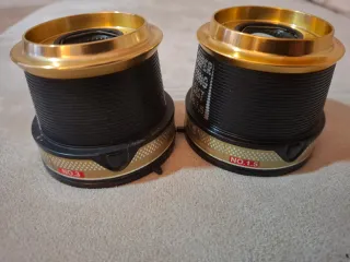 Dos bobinas de repuesto para carretes de pesca Tica. Son de color negro con detalles dorados. - Bobina Tica nº 3 - Bobina Tica nº 1.5 30 euros las dos (Apenas uso)