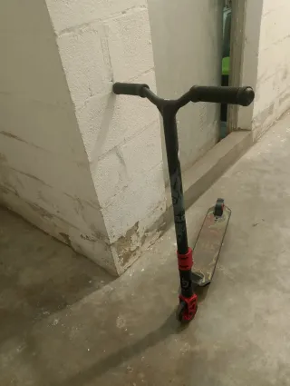 Patinete de estilo libre con un diseño llamativo en rojo y negro. - Plataforma con detalles troquelados. - Ruedas negras. - Puños de goma para un mejor agarre. Se ha utilizado muy poco, es una pena porque no lo utilizo y es un buen scoot. ESCUCHO OFERTAS