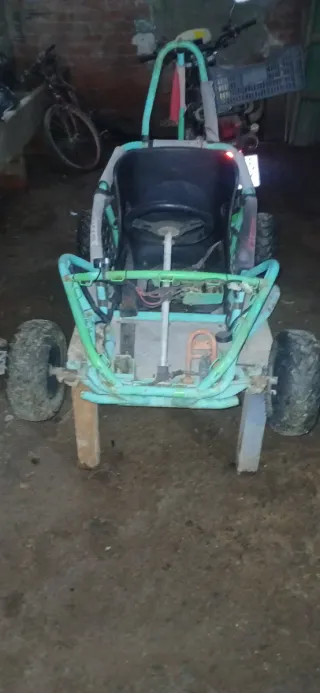Kart de carreras infantil, ideal para diversión al aire libre. - Estructura tubular resistente. - Asiento ergonómico. - Ruedas todoterreno. Se puede vender por separado y negociar algo.aconsejable recogida en mano