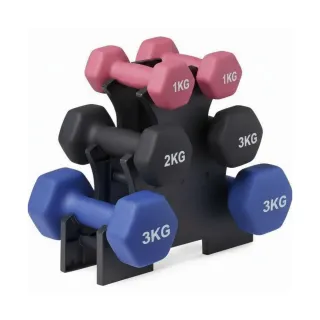 Conjunto de mancuernas de fitness con un peso total de 12 kg, ideal para entrenamientos en casa. Incluye un soporte/rack para tener las pesas siempre bien colocadas. Fotos reales al final. - 2 mancuernas de 1 kg - 2 mancuernas de 2 kg - 2 mancuernas de 3 kg - Soporte para organizar las pesas ‼️ Todos nuestros productos son nuevos, a estrenar y se entregan en su embalaje original. Somos tienda ‼️ Recogida en zona sur de Madrid (Méndez Álvaro, Conde Casal) y también enviamos por wallapop. Envío (no entrega) garantizado en 24h (hábiles).