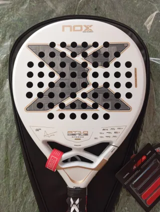 Pala de pádel Nox AT10 Genius 12K Alum Xtrem, diseñada para un juego avanzado. - Peso: 368g - Incluye funda protectora - Incluye grips de control y potencia