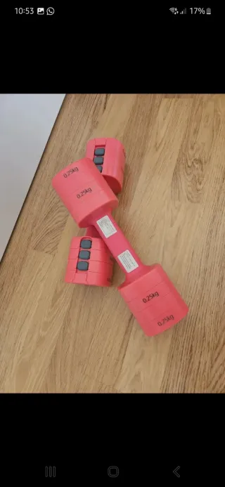 Vendo juego de pesas, tiene un adaptador y se convierte en una barra. 4 pesas de 1,5 kg 4 pesas de 2 kg 4 pesas de 2,5 kg 4 pesas de 3,5 kg