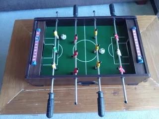 Futbolín y mesa de billar de madera y fácil transporte. Tiene algún desperfecto en los tacos del billar, uno de ellos está algo desviado. Medidas: 15x31x52 cm Peso 4 kilos 📦 SOLO HAGO ENVÍOS 📦