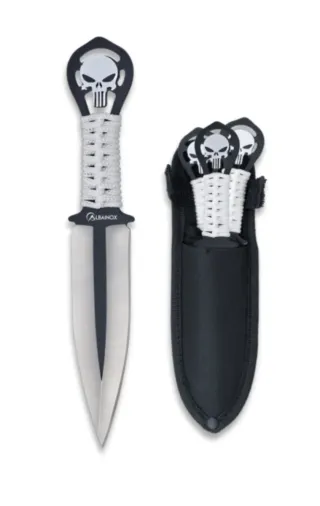 OFERTA JUEGO DE 3 LANZADORES MANGO ENCORDADO BLANCO THE PUNISHER Acero inoxidable de Albacete El set incluye: - 3 Lanzadores - Funda de nylon para colgar en el pantalón Hoja 9.90cm Mango 7.5cm Tamaño total 17.4cm Acero inox 3Cr13Mov Peso 61.10gr Mango enterizo encordado Completamente Nuevos, traidos directamente de fábrica Visados por la Guardia civil. Cumplen la normativa. Un solo filo Más modelos disponibles en mi perfil Pagos y envíos por la aplicación DE 23€ ESTÁ REBAJADO AQUÍ A 15€ PARA COMPENSAR LOS GASTOS DE ENVÍO SOY TIENDA ONLINE AQUÍ LO VENDO REBAJADO AL MÁXIMO 🗣️NO ENTREGO EN MANO