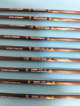 Vendo juego de 9 flechas Easton ACC 3-49. Están en muy buen estado. - Modelo: Easton ACC 3-49 9 flechas para tiro de precisión. Usadas pero en perfectas condiciones de uso, recién emplumadas y pesadas para su debido emparejamiento. Tubo de aluminio carbono de competición SuperLite ACC. Calibre 3-49/390. Spine (flexión) 0.390. Longitud 29,5" (74,5ctm). Peso 407-408 grains. Precio de las 9 flechas: 75€. Gastos de envío no incluidos.