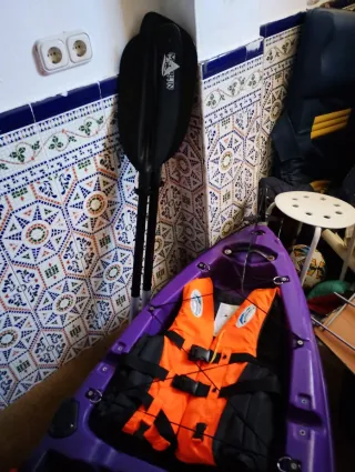 Se vende kayak Marlin de color morado, ideal para disfrutar del agua. Incluye chaleco salvavidas naranja y remo. - Kayak de la marca Marlin. - Chaleco salvavidas de color naranja. - Remo incluido. T l f 645325257 y zonda i dos motores edte precio solo oy