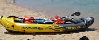 Kayak hinchable Intex Explorer K2. Usado dos veces. - Capacidad: 2 personas - Incluye 2 remos desmontables , 2 asientos hinchables, bomba de inflado y quilla de dirección extraible. - Dimensiones: 312x91x51 cm.