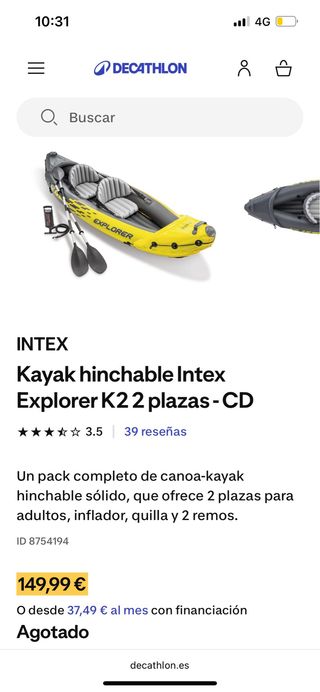 🚣♂️ Kayak inflable INTEX EXPLORER K2 – NUEVO SIN ESTRENAR Kayak inflable INTEX EXPLORER K2 completamente nuevo, sin estrenar. ✅ 2 plazas (hasta 180 kg) ✅ Incluye dos remos de aluminio, bomba de inflado, asientos ajustables y quilla desmontable ✅ Material resistente, muy estable y cómodo ✅ Se infla en pocos minutos y cabe en cualquier maletero Perfecto para disfrutar en lago, pantano o mar en calma 🌊 💶 85€ 📍 Entrega en mano en [Logroño] 🔥 Listo para estrenar esta temporada!