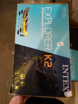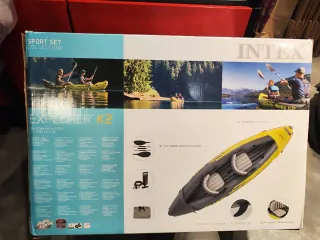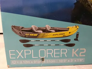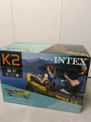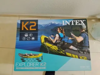 Kayak hinchable Intex Explorer K2 para 2 personas, sin estrenar. - Modelo: Explorer K2 - Capacidad: 2 personas - Incluye remos y bomba de inflado.