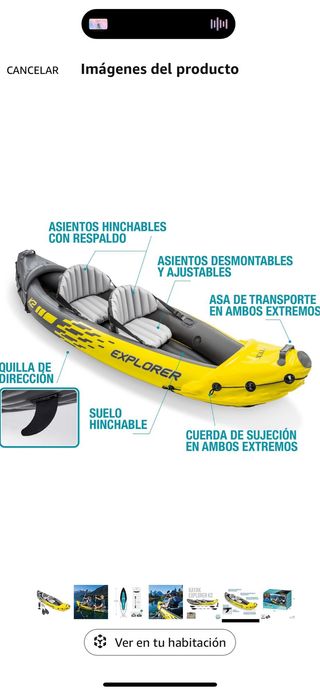 Kayak hinchable de dos plazas, modelo Explorer K2. Ideal para disfrutar de paseos por el mar o lagos. - Diseño en color amarillo y gris. - Incluye remos. No tiene funda,está en bolsa de plástico.se me rompió Incluidovan ,los 2 remos,el hinchador,un chaleco por estrenar y el bidón