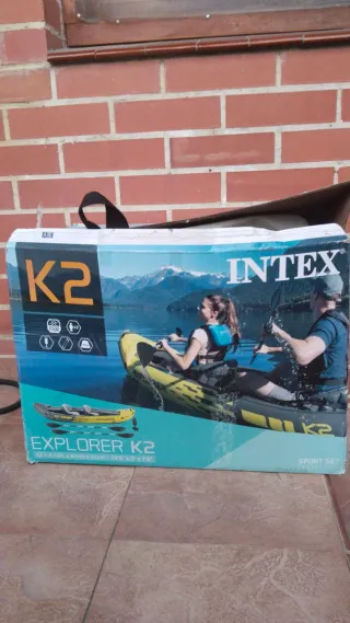 Me lo compré con mi pareja, pero nunca lo estrenamos está en su caja nueva sin abrir . Kayak hinchable Intex Explorer K2, nuevo en su caja. - Modelo: Explorer K2 - Capacidad: 2 plazas - Incluye inflador, quilla y 2 remos. - Ideal para adultos.