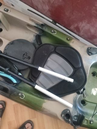 Kayak de pesca rígido con plazas 1+1. Incluye las palas, asiento y otros accesorios. Seminueva, ya que, solo ha salido al mar dos veces. pueden ir tres personas. Características: Tambucho estanco con bolsa intrna.. red trasera para bultos, todo nuevo, sillon acolchado con respaldo y compartimento para guradar objetos. Es un kayak muy estable , tanto para ocio como para la pesca. Mas informacion estaremos encantados de comentar.