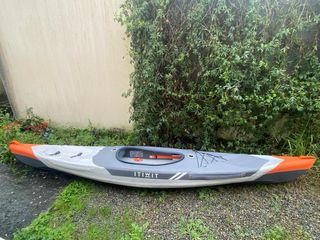 Kayak hinchable Itiwit en perfecto estado, casi nuevo, solo se ha utilizado 4 veces. Se incluyen los remos. - Capacidad para 2 o 3 personas. - Diseño compacto para fácil transporte. Diseñado para el usuario ocasional de travesía en kayak, para que naveguen 2 o 3 personas, en aguas tranquilas. SUS VENTAJAS CAPACIDAD: Para 2 o 3 personas, con un peso máximo de 230 kg (507 lb). FACILIDAD DE MONTAJE/DESMONTAJE: Se infla en 10 minutos con una bomba de mano de doble acción, a 1,5 PSI (0,1 bar) ESTABILIDAD: Los tubos laterales y el suelo hinchable ancho aportan una buena estabilidad.