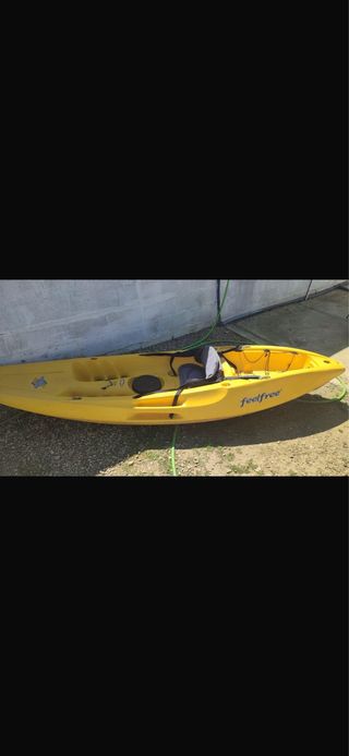 Kayak de color amarillo, marca Feelfree. Ideal para disfrutar de actividades acuáticas. - Asientos cómodos. - Diseño estable.