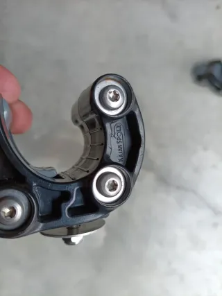 Kit de dos unidades de "KajakSport Self Rescue Clamps". Soportes de pala para auto-rescate en kayak de la prestigiosa marca finlandesa KajakSport. También son perfectos para fijar la pala de forma segura en los kayaks de pesca. Puede usarse con o sin flotador de pala, o para ayudarse en los embarques. Se fija a la cubierta trasera del kayak mediante tornillos inoxidable M6 (incluidos). Simplemente al introducir la pala en el soporte, esta se queda fijada para no perderla. Sistema de liberación rápida para extraer la pala al reembarcar. Los he retirado por cambio de kayak, pero funcionan perfectos.