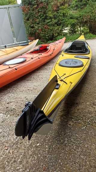 Kayak Atlantic amarillo con sistema de pedales. - Asiento ajustable. - Pala incluida. - Ideal para paseos en el mar o lagos. Le falta el timón posterior.