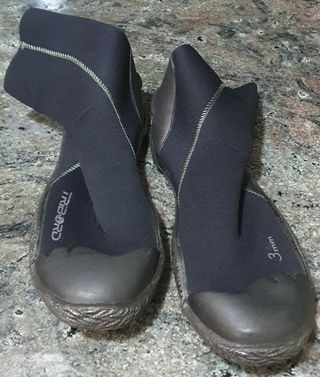 Escarpines de neopreno Tribord de 3mm para buceo, kayak o deportes acuáticos. Suela reforzada para mayor durabilidad. - Material: Neopreno - Grosor: 3mm - Marca: Tribord - Talla: 38/39