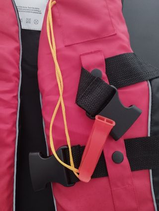 Chaleco salvavidas. Sin estrenar. Talla m. Medida válida para niño o mujer de hasta unos 60 kilos. con silbato.. vendo porque el kayak que compre llevaba sus chalecos. No negociable