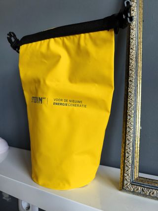 Bolsa estanca color amarillo pescanova. Impermeable, ideal para proteger tus pertenencias del agua, la arena y el polvo. Es perfecta para tus escapadas de verano, para llevar en la bici, deportes acuáticos como rafting, kayak, paddle surf, o incluso para llevar tus cosas a la playa, piscina o aquapark. Está sin estrenar. - Cierre enrollable.