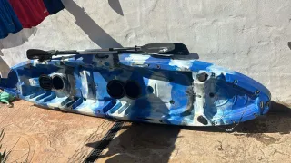 Kayak Galaxy alboran fx a pedales, esta en buen estado, siempre endulzado tras cada salida, tiene marcas del uso como es lógico pero esta muy bien. Pedalera muy cuidada y engrasada tras cada uso. Gran vivero o cajón de almacenaje poniéndole un tapón (incluidos varios tapones). Asiento ajustable en altura y longitud a la pedalera. Remo dos piezas original de galaxy incluido. Instalación de sonda incluida, si se quiere se puede añadir la sonda Garmin stricker plus 5cv con transductor gt20 (+230€), solo sonda no se vende.