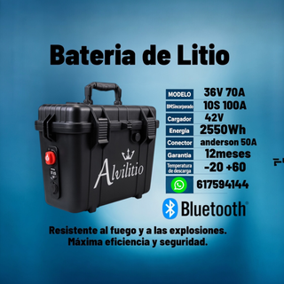 Batería de litio portátil en maleta con protección IP65 📌 Modelo: 36V 70Ah Maleta de energía 🔋 Voltaje nominal: 36 🔋 Voltaje máx.: 42 🔋 Capacidad: 70Ah ⚡ Energía: 2550 Wh 🔧 Tipo de celda: Litio 🛡 BMS integrado: JK Smart (balanceo + app) 🔌 Conector: Anderson 50A ⚙️ Cargador: 42V 5A 🧰 Maleta robusta: Sí 💧 Protección: IP65 (resistente al agua y polvo) 🏭 Fabricado por: AlviLitio 📅 Garantía: 12meses ✈️ Envio 24-48H Si le interesan nuestros trabajos, puede encontrarnos en Google, Instagram y YouTube como AlviLitio. ☎️6️⃣1️⃣7️⃣5️⃣9️⃣4️⃣1️⃣4️⃣4️⃣