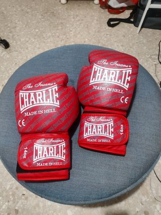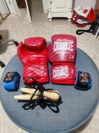 Se vende kit de guantes de boxeo, compuesto por : Guantes 14 onzas marca Charlie Vendas 4 metros Comba de salto Se vende tras un mes de uso, ya que comencé a boxear pero tuve que desplazarme y no me es posible. Esta todo como nuevo, ni un arañazo