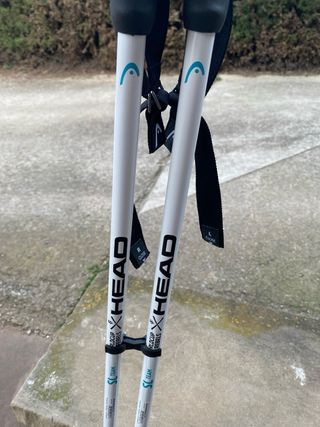 Palos de esquí junior de la marca Head, modelo Worldcup. tamaño 105cm nuevos: me equivoqué de talla al pedirlos y se me pasó el plazo de devolución - Diseño en color blanco y negro. - Empuñaduras ergonómicas. - Puntas de goma para mayor agarre.
