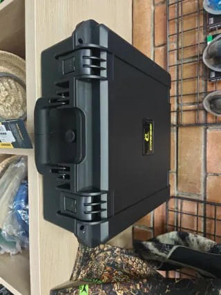 Conjunto de cuatro alarmas de pesca Super EX y un carrete. - Carrete de pesca con hilo naranja. - Cuatro alarmas de pesca Super EX con diferentes colores de indicadores (rojo, azul, amarillo). - Una funda de transporte negra. Precio negociable