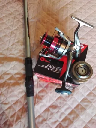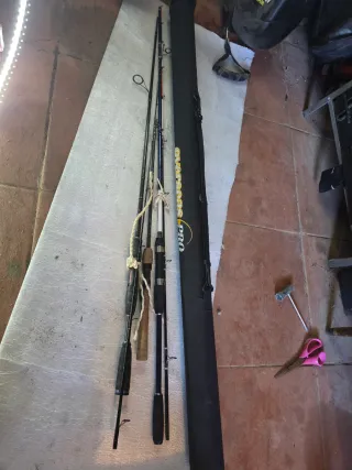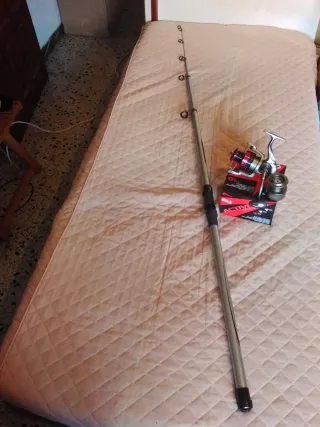 Compuesto de preciosa caña de 3'80mts Acción 30/70grs,con su carrete a medida Todo de la prestigiosa marca evia,de una Calidad indiscutible. Por su medida y accion muy polivalente Precio innegociable.