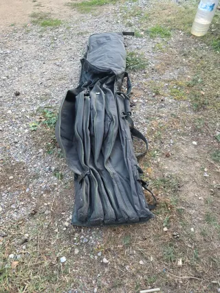 Funda de transporte para cañas de pesca. Es resistente y protege tu equipo. - Color verde oscuro. - Múltiples compartimentos. - Cierre con cremallera.