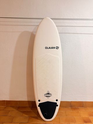 Tabla de surf Olaian de 6 pies y 46 litros. - Color blanco. - Diseño moderno. - Ideal para iniciarse en el surf. - Medidas: 6’0 - Volumen: 46L - Material: Espuma/Corcho Seminueva, la tabla tiene 5 usos