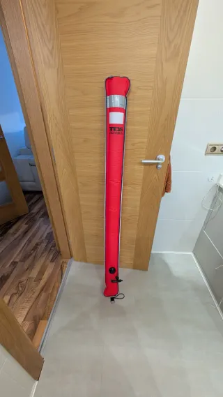 Boya de buceo de la marca TDS en color rojo anaranjado Usada solo una vez, se encuentra en perfectas condiciones - Color: Rojo - Marca: TDS - Diseño tubular - Inflado